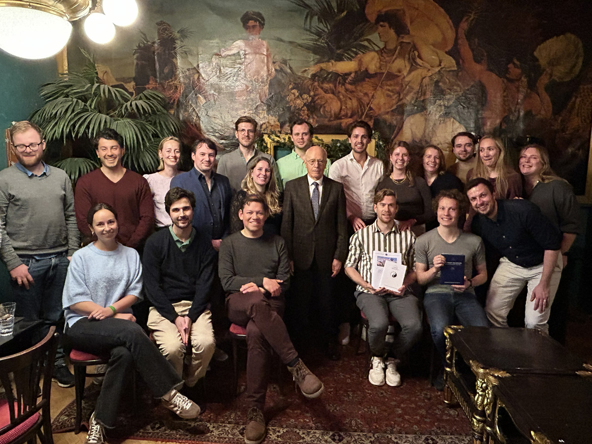 Hans Köchler, President of the International Progress Organization, center, with youth delegation of Democrats 66.