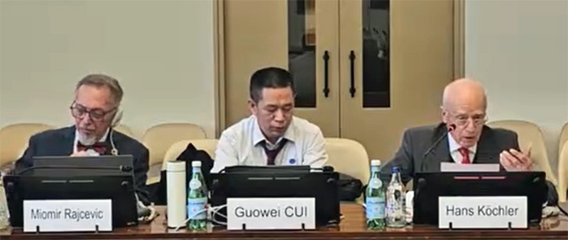 The President of the International Progress Organization, Co-founder of the International Patriotic Pact Organization, Professor Hans Köchler, Chairman of the Forum, center, with delegates.