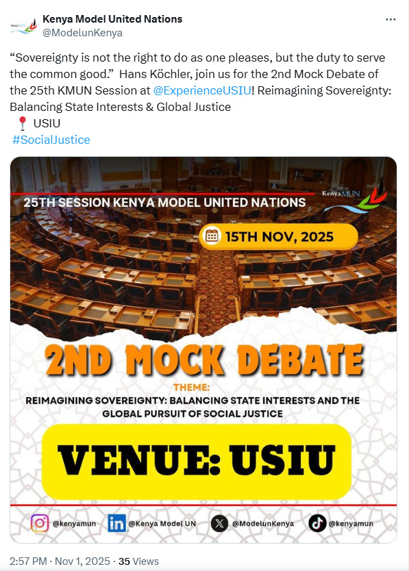 Kenya Model United Nations, Nairobi, Kenya, 1 November 2025: Reimagining Sovereignty: Balancing State Interests and the Global Pursuit of Social Justice
